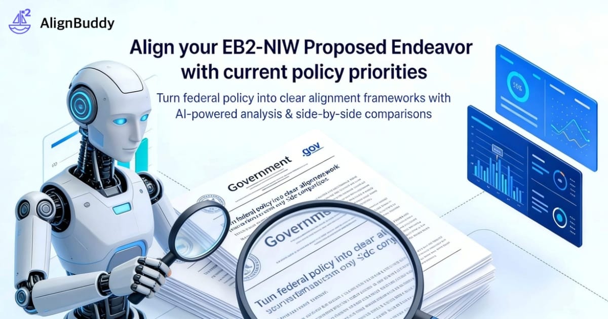 Align your EB2-NIW Proposed Endeavor with recent US federal priorities. Get explainable suggestions, rewrites, and so...