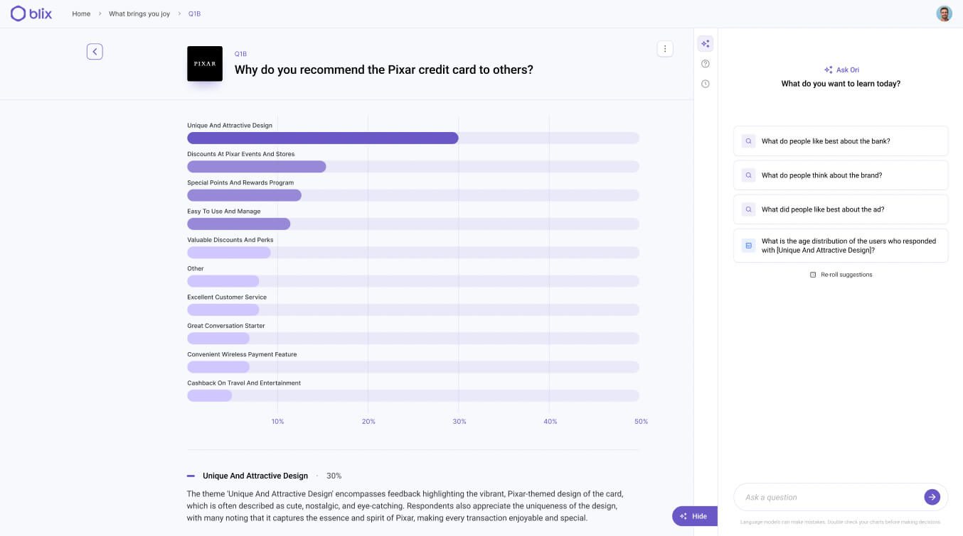 Blix verbatim coding software turns open-ended survey questions, online reviews & other textual feedback to insights effortlessly with AI-powered text analysis.