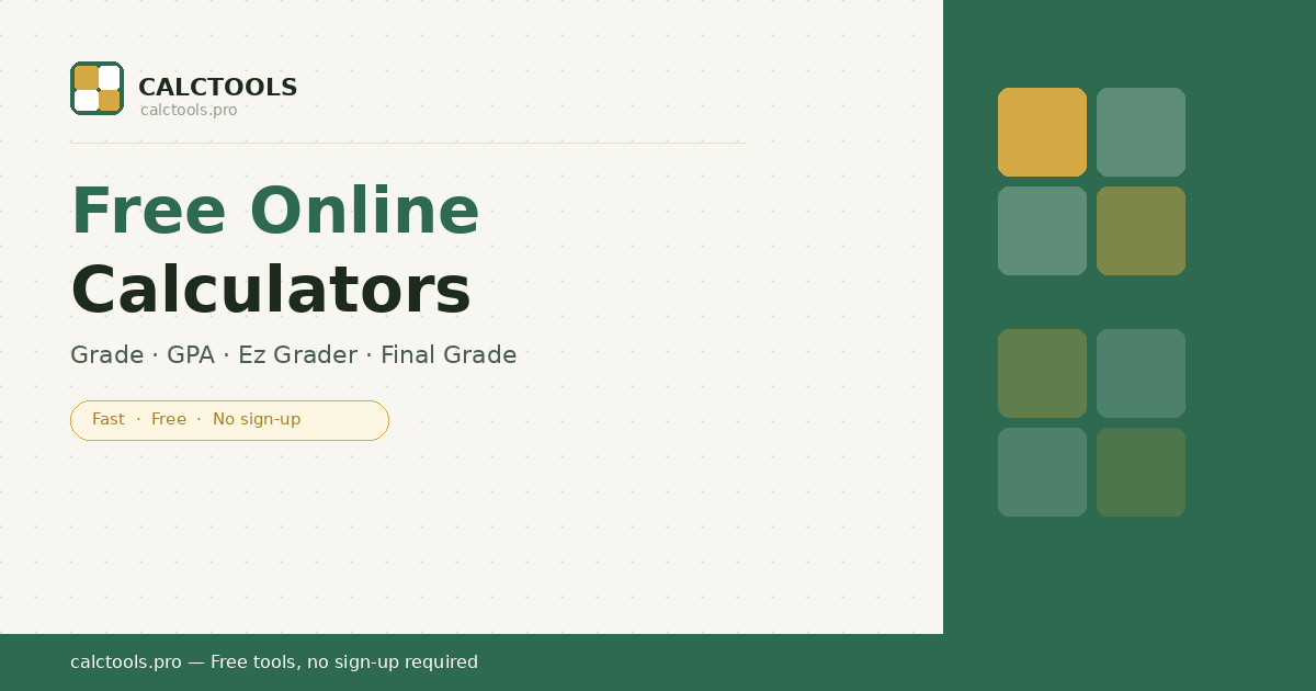 Free online calculators for students. Grade, GPA, Ez Grader, and more.