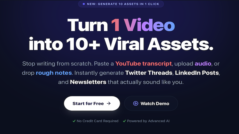 ConvertlyAI is a text-based SaaS platform operating as a context-aware content repurposing engine. Designed for solo founders, creators, and bootstrapped entrepreneurs, the platform transforms a single input—such as a rough draft, voice note, or video transcript—into a comprehensive suite of distinct marketing assets instantly. By eliminating prompt fatigue and the need for repetitive context setting, ConvertlyAI allows users to scale their brand voice across blogs, newsletters, and social media