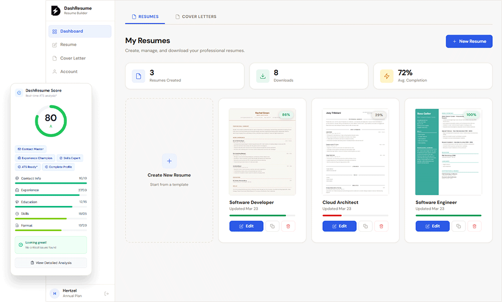 Dash Resume is a professional online resume builder designed to help job seekers create high-quality documents that stand out to recruiters. The platform focuses on providing a streamlined editing experience that allows users to customize every section of their resume while maintaining a clean, professional layout. By utilizing structured templates, the tool ensures that your final document is both readable for humans and optimized for Applicant Tracking Systems (ATS). Professional Templates and