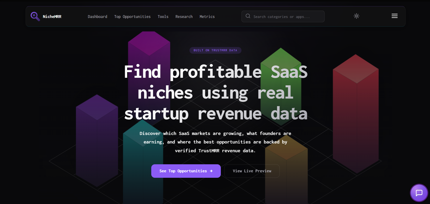 Find Profitable SaaS Niches Using Real Revenue Data NicheMRR helps founders, indie hackers, and investors discover underserved SaaS niches backed by real revenue. Instead of guessing ideas, you explore markets where products are already generating MRR. What It Does Analyze SaaS niches using real MRR data Identify high-opportunity, low-competition markets Explore startup benchmarks (revenue, growth, customers) Evaluate niches with a clear opportunity score Build in markets that are proven to work