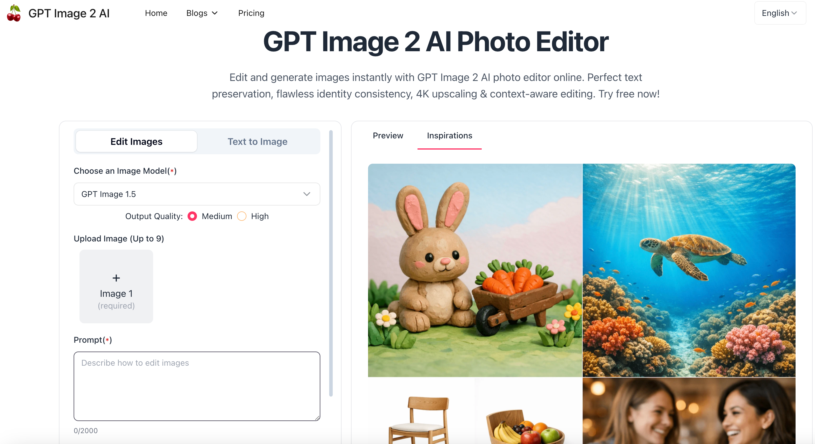 Create and edit images with GPT Image 2. Harness OpenAI's GPT Image 2.0 for perfect text, consistent characters, and studio-quality photorealism. Perfect text preservation, flawless identity consistency, 4K upscaling & context-aware editing. Try free now!