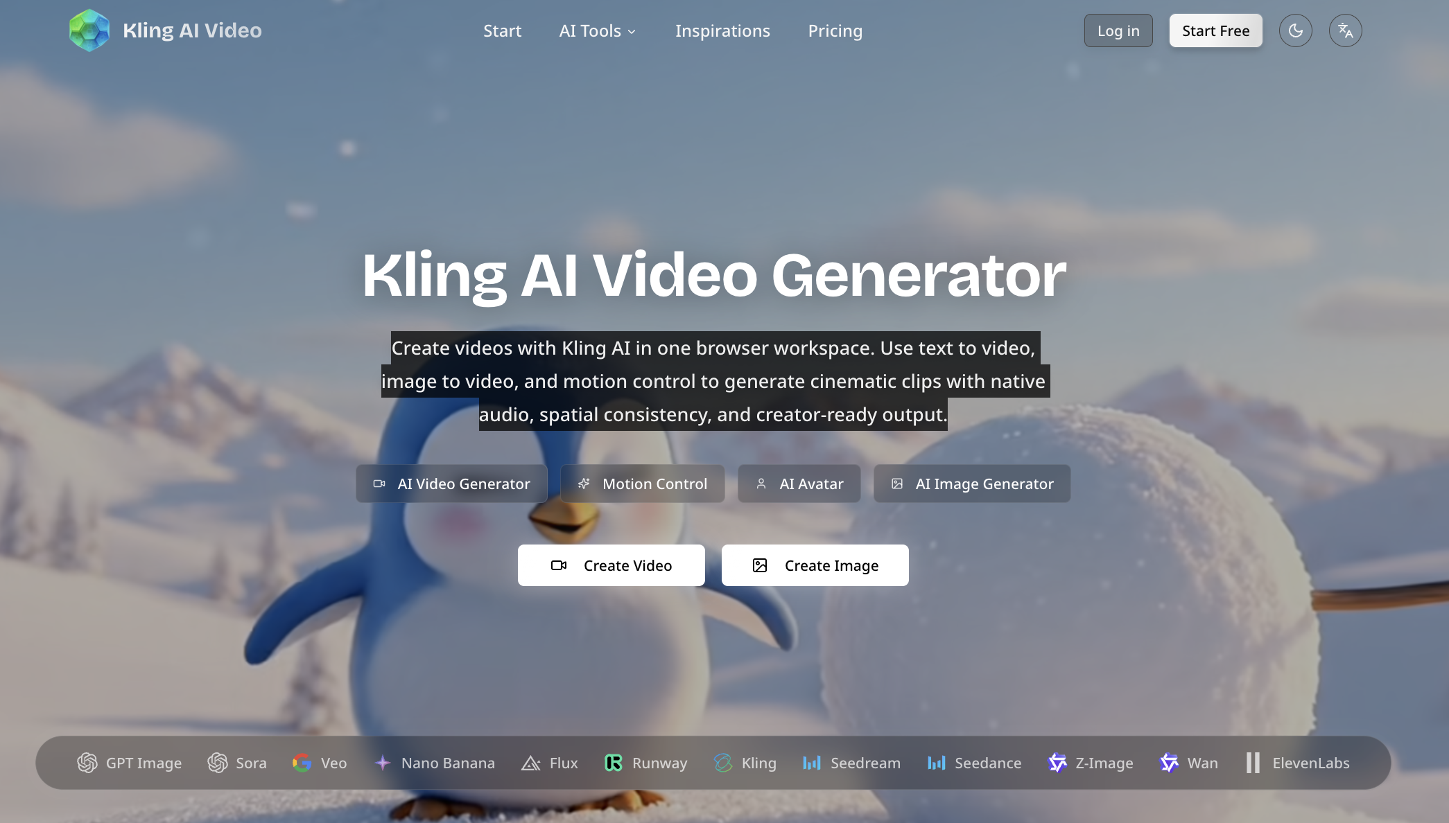 Create Kling AI videos online with text to video, image to video, and motion control. Generate cinematic clips with native audio and spatial consistency in your browser.