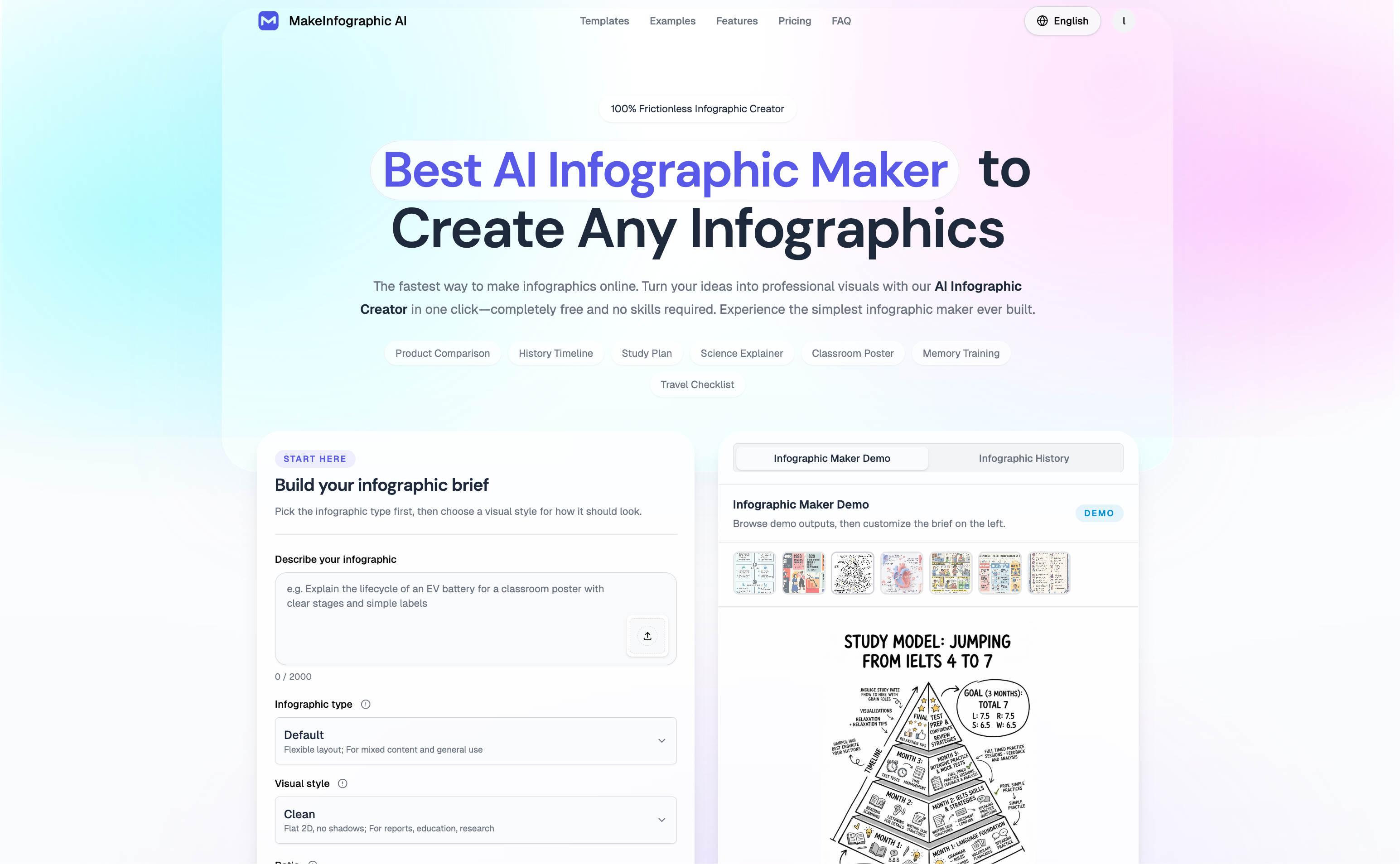 MakeInfographic.ai MakeInfographic.ai is an AI-powered infographic Maker that helps you quickly turn ideas, text, or data into clean, professional-looking infographics—no design skills required. Simply enter your content, and the platform will automatically generate a visually structured infographic in seconds. --- ✨ Key Features AI-Driven Creation Instantly convert text into well-organized visual content. Multiple Formats Create timelines, flowcharts, comparisons, lists, and more. Customizable