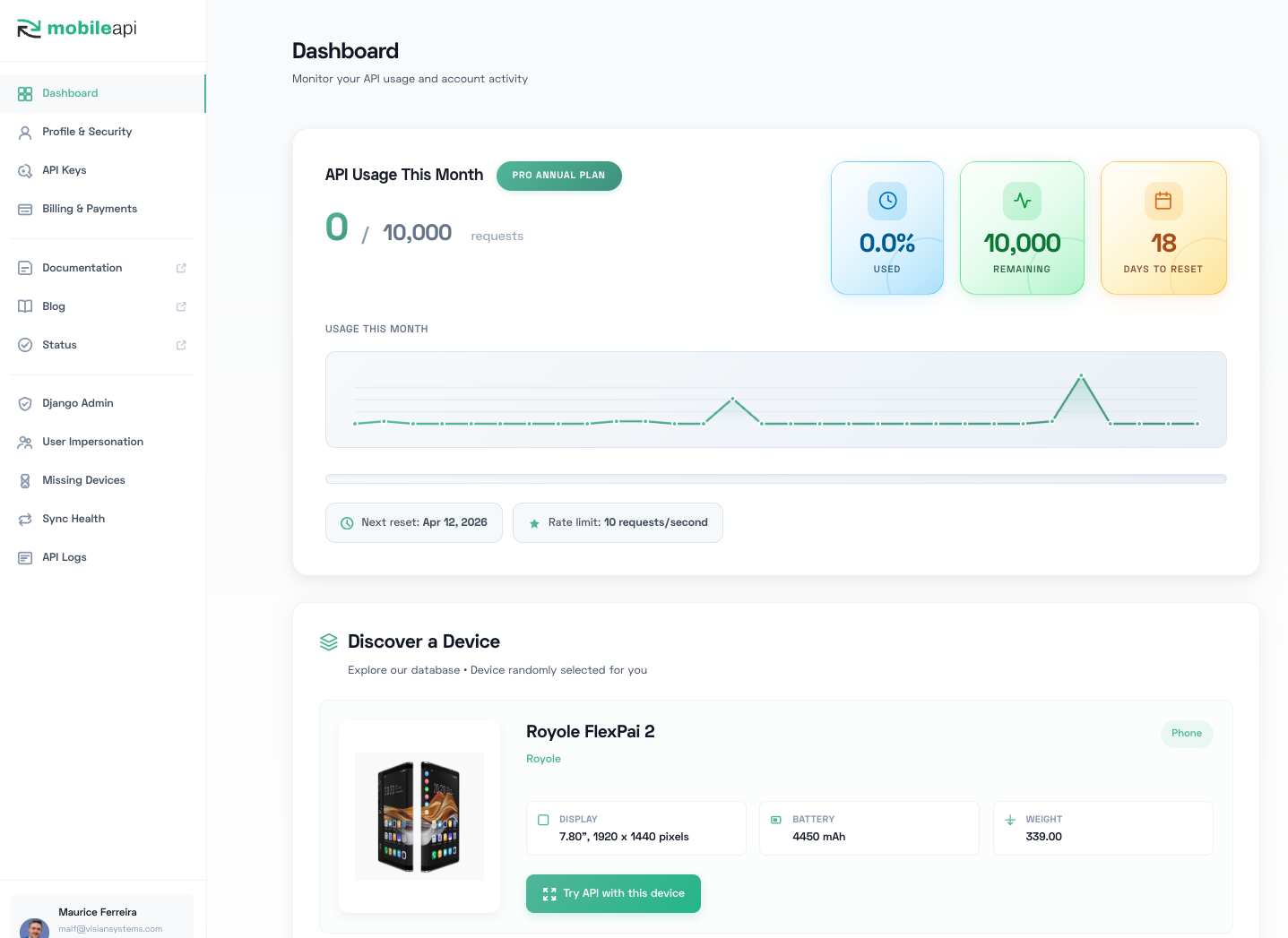 Device specifications API with 31,000+ phones, tablets & wearables. Get specs, images and pricing via REST API. Free tier available.