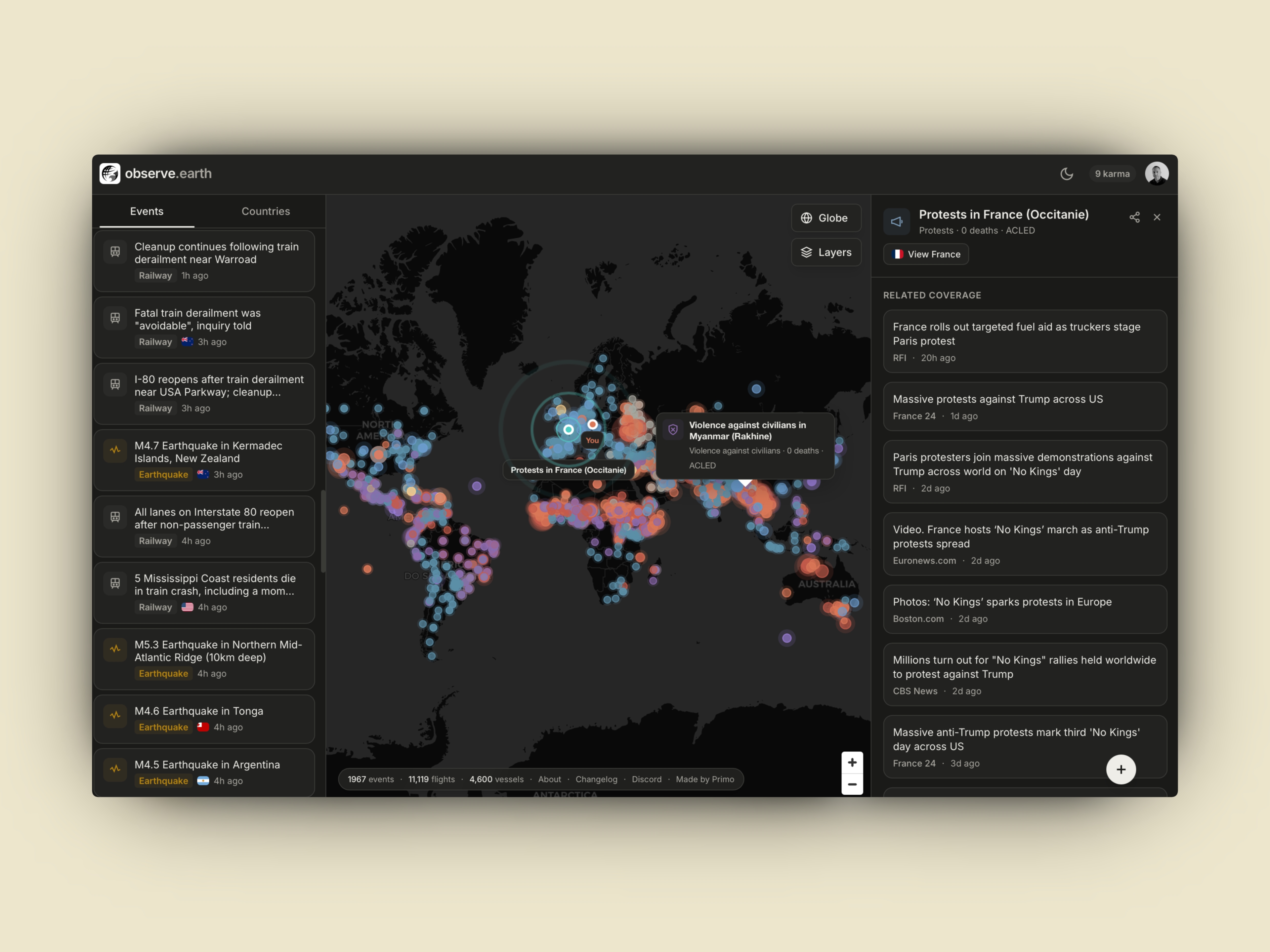 Global Monitoring and Real-Time Insights ObserveEarth is a specialized analytics platform designed to provide a comprehensive understanding of global events as they unfold. By focusing on a country-by-country analysis, the tool allows users to track critical developments across multiple sectors including public health, economic shifts, and social trends. Comprehensive Event Tracking The platform monitors a wide range of global dynamics to ensure users stay informed about significant changes. It