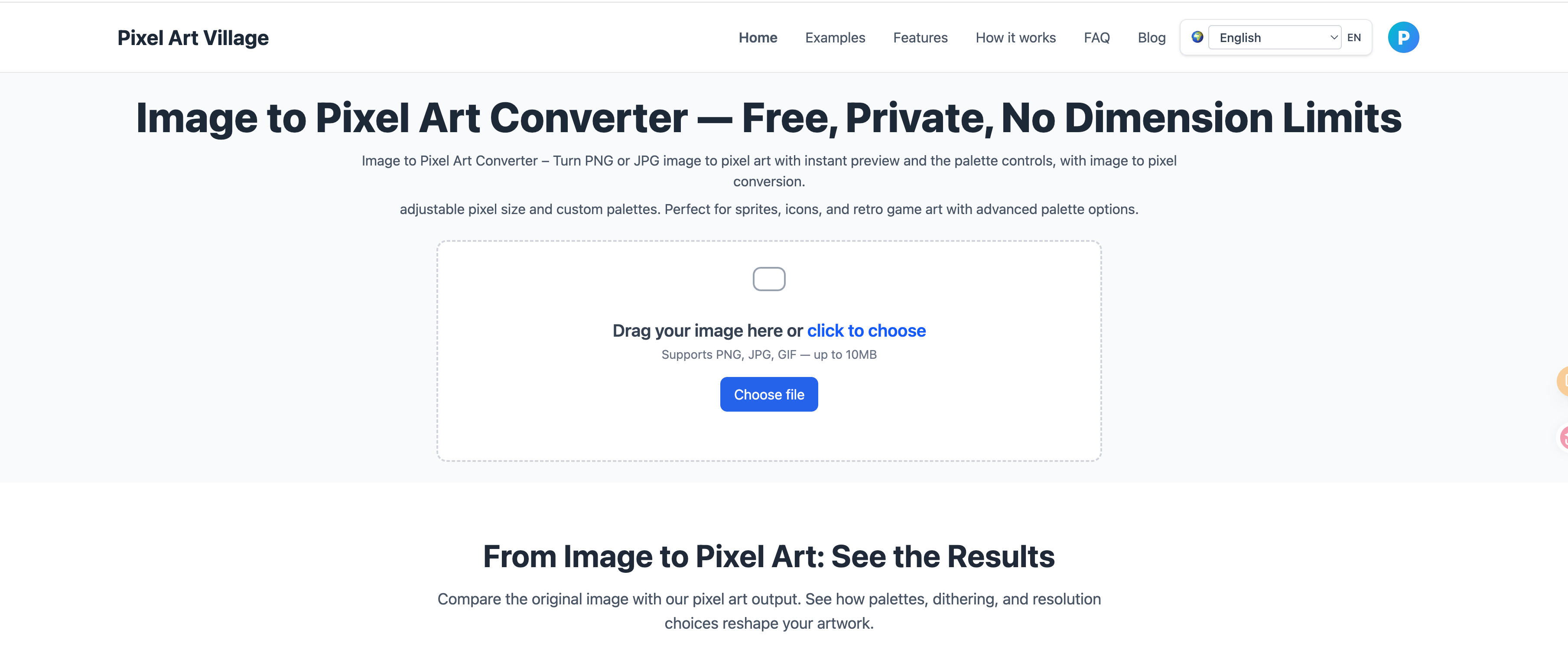 Use Pixel Art Village to convert images to pixel art, pixelate photos, build sprites, and open PNG, JPG, or GIF tools with live preview and private…