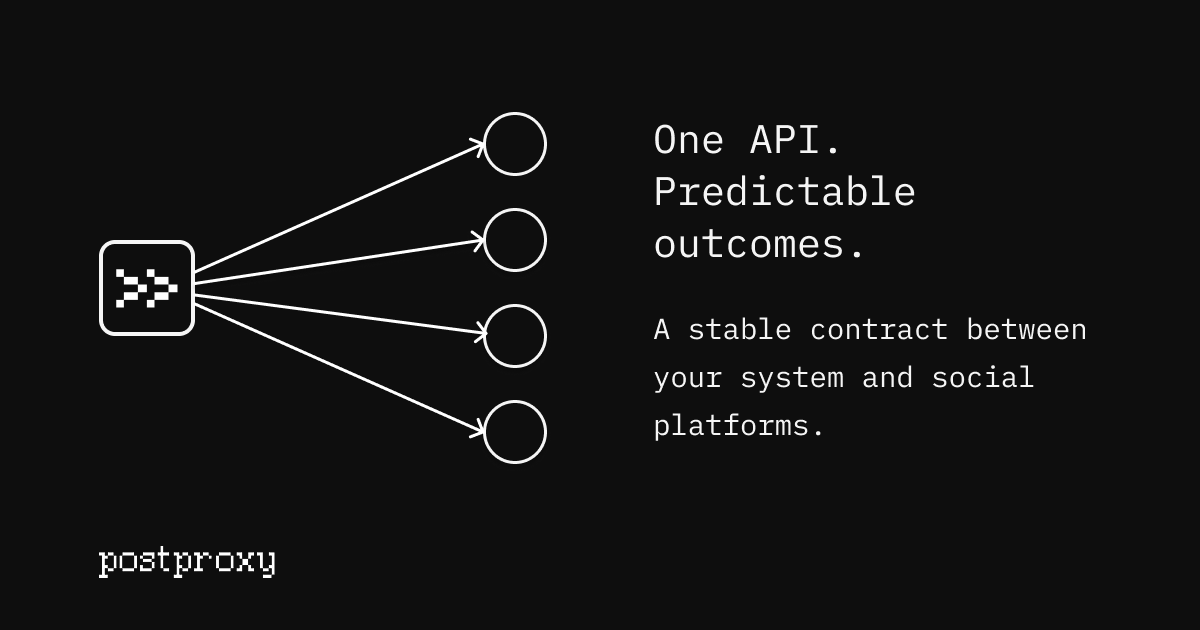 Postproxy is a unified API for publishing to social media. Integrate once and avoid fragile platform APIs, broken posts, and last-minute failures.