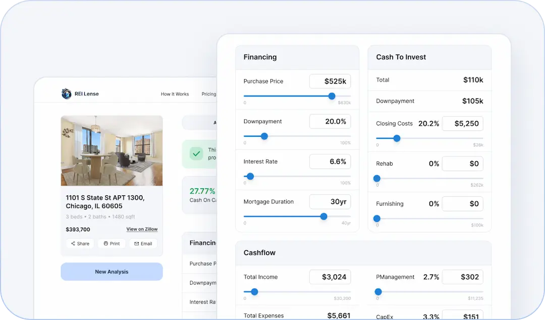 Explore real estate investment analytics with REI Lense. Short, mid, and long-term rental analysis tools and calculat...