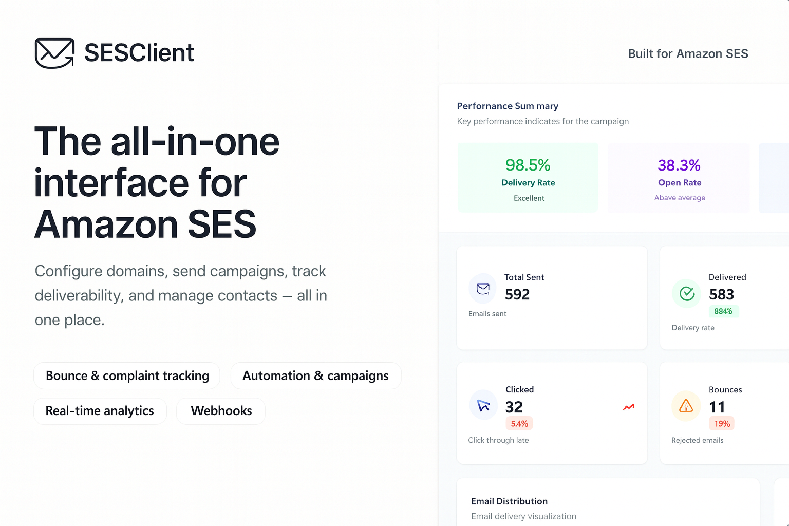 Simplify your email management with SESClient, the user-friendly interface for Amazon SES. Join our waitlist to be the first to know when we launch!