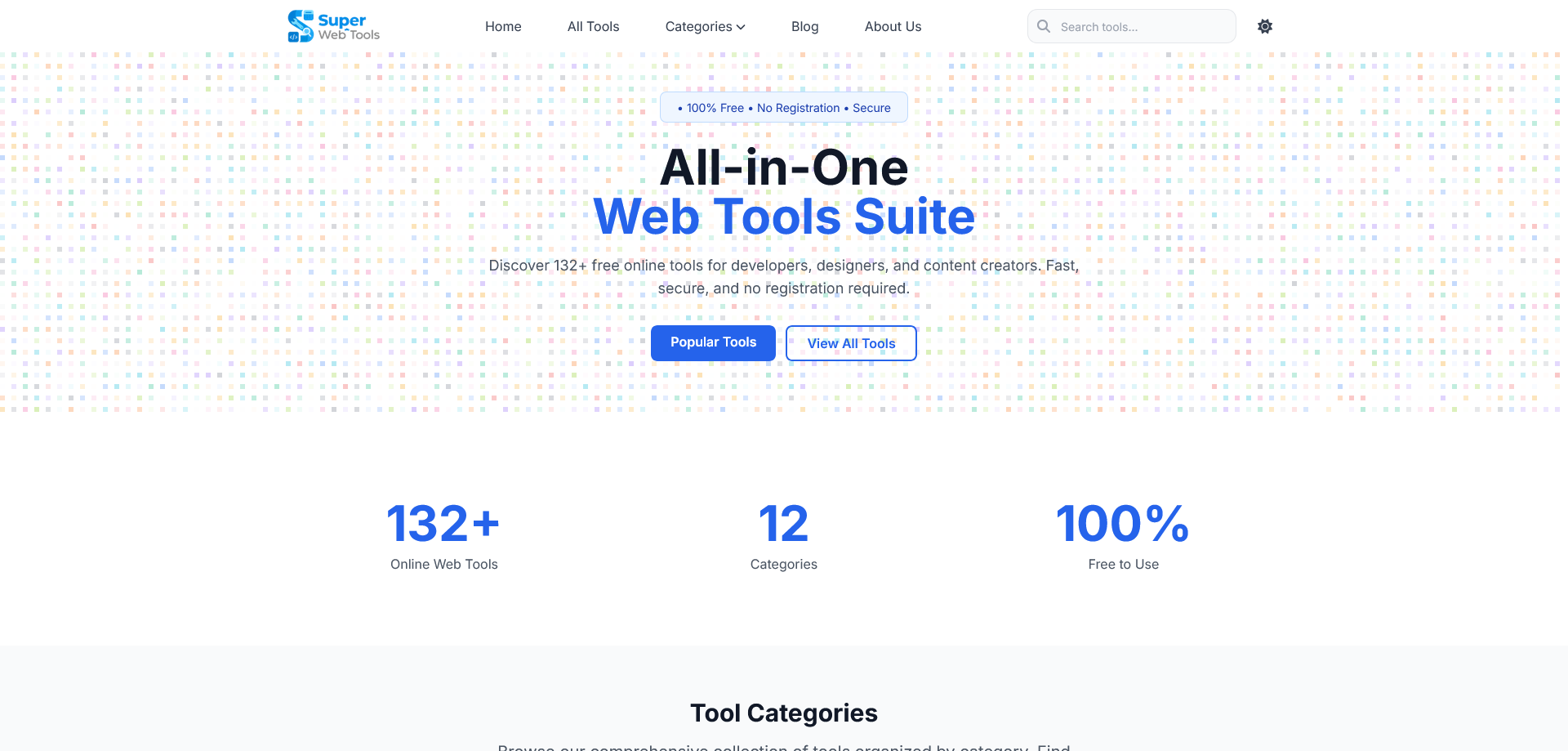 All-in-One Web Tools Suite - 131+ Online Fast and Free Tools for Developers and Content Creators.