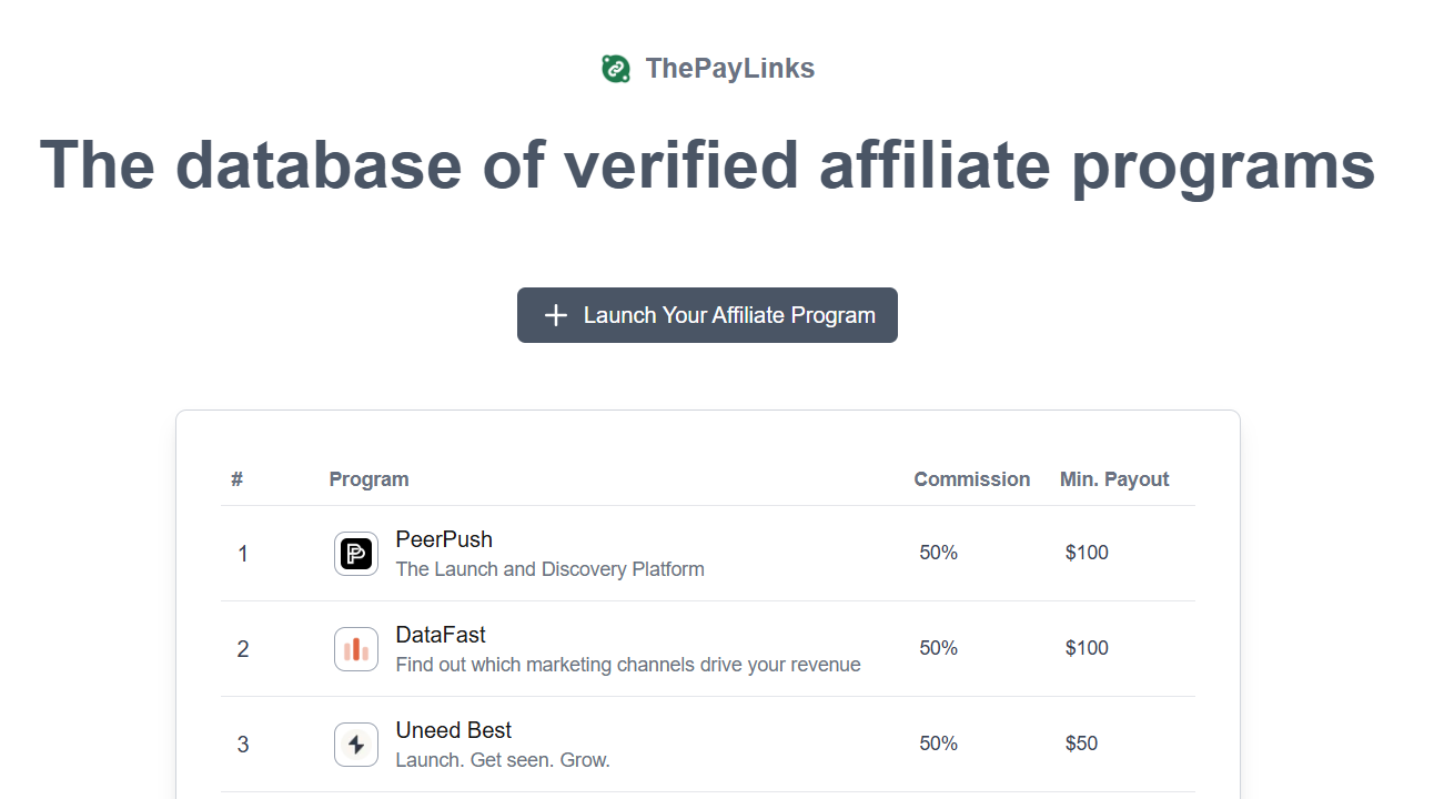 Discover verified affiliate programs across SaaS, eCommerce, and startups. Find high-converting affiliate opportunities in one curated database.