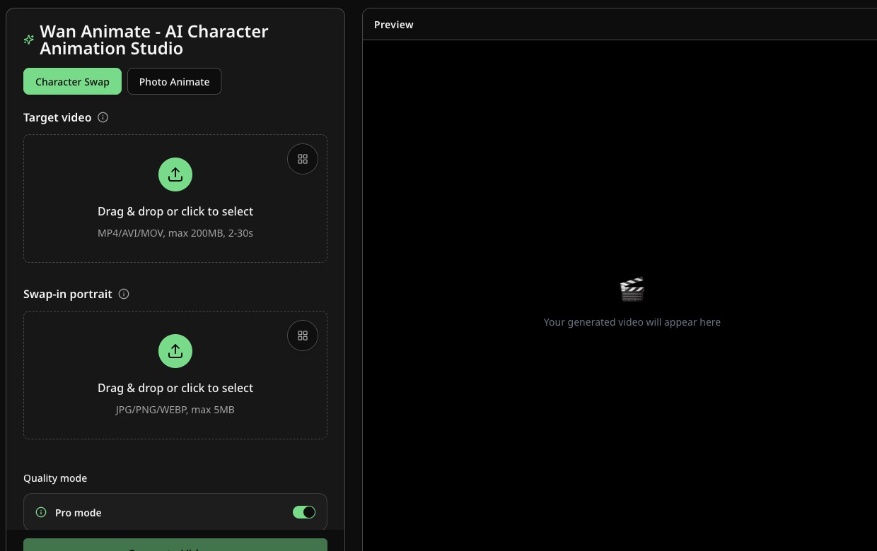 Create cinematic AI character animation, face swaps, and motion-controlled videos with Wan Animate using text, images, or reference footage.